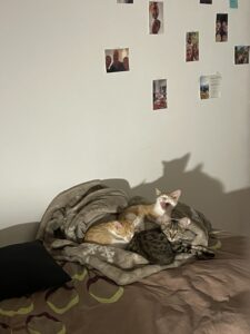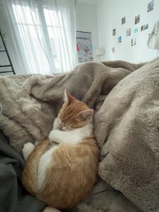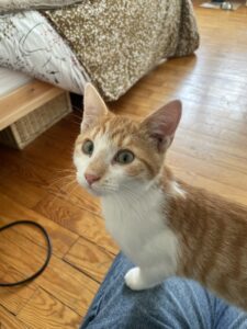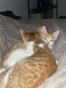 Je suis un petit chat très joueur, j’ai beaucoup d’énergie à dépenser mais aussi beaucoup d’amour à revendre. Les instants câlins à n’importe quel moment de la journée sont mes préférés! Le dodo dans le lit, blotti contre la chaleur des autres est indispensable. J’aime suivre mes humains pour savoir s’ils ont du temps à m’accorder et s’ils auraient pas de la pâté à me redonner 😉