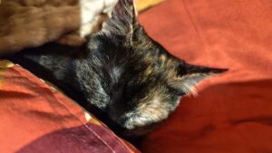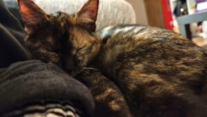 Bien que ce son côté câlin soit adorable, c’est un chaton demande du temps et de la présence afin qu’elle ne se sente pas délaissée. Si vous cherchez un chat indépendant et discret, elle n’est pas faite pour vous. Je pense qu’une personne en télétravail/temps partiel ou une autre présence féline serait idéale afin qu’elle ne se sente pas seule.