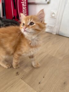 Picasso petit roux poil mi long a été trouvé alors qu’il avait trois semaines c’est un chaton adorable très câlin et joueur. Proche de l’humain il adore qu’on s’occupe de lui.