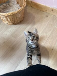 Dalì petit chaton tigré a été trouvé alors qu’il n’avait que quelques jours. Il était seul dans sa famille d’accueil donc après son sevrage il a rejoint Picasso et cappuccino afin d’avoir des copains pour jouer.