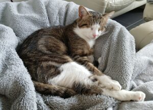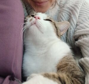 Popeye est un jeune chat tricolore d’un an et demi ayant vécu seul plusieurs mois dans la rue. Sa très grande sociabilité envers l’humain, démontrée lors de ses premiers soins véto, a incité l’asso à imaginer pour lui une vie en famille plutôt qu’un retour à la vie de chat libre.