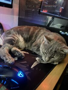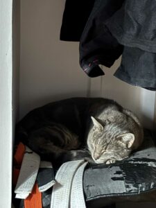 Enfin, la dernière grande caractéristique de Schwarzy réside dans sa faim. C’est simple, c’est un très grand gourmand. Parfois trop ? Si sa plus grande qualité serait d’être toujours ponctuel pour le rituel de la pâté, son plus grand défaut est d’absolument aspirer toute source de nourriture qu’il a à disposition, même celle d’un autre chat s’il doit cohabiter. Il faut donc veiller à laisser des sachets de croquettes ou pâtés facilement ouvrables dans les parages.