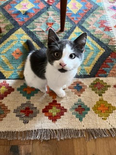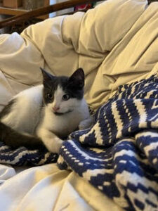 C’est un chaton très joueur et gourmand. Elle adore les balles en aluminium et jouer avec les autres chats.