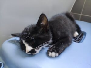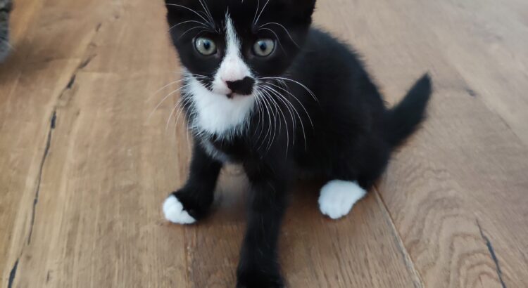Chaton noir et blanc de 3 mois et demi. Le sosie du célèbre Félix ! C’est un petit chat espiègle et très joueur qui aime les caresses . Il viendra facilement à votre rencontre. Une fois repu de jeux, il s’endormira profondément pour de longues siestes.