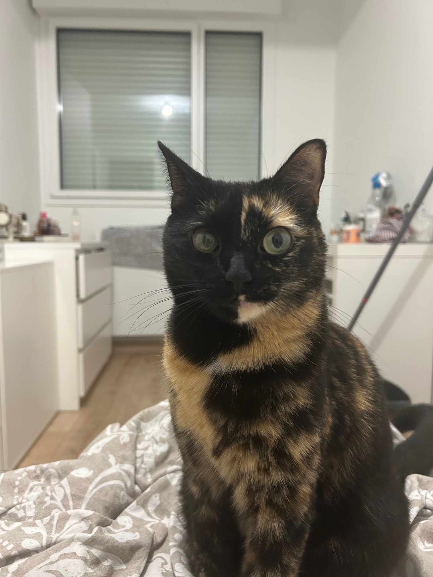 Très jolie frimousse, très peureuse (au début), très câline après, Sheba n’aime pas rester dans un coin seule.
