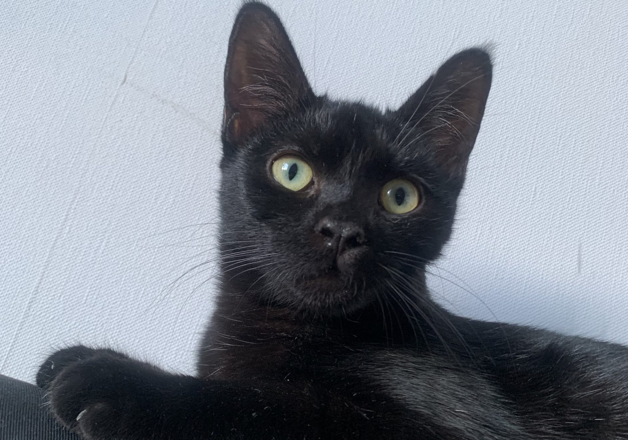 Une fois que vous l’avez ? Vous découvrirez un chat joueur et curieux, pro de la chasse aux boulettes de papier et de l’attaque acrobatique de fil, qui vous émerveillera de moult mouvements d’art martiaux de sa création. Une fois fatigué de ses prouesses, il aime dormir contre les jambes bien au chaud sur le lit. Il vient de découvrir le bonheur des caresses et s’y habitue encore (il faut y aller doucement et lui laisser le temps) mais en demande de plus en plus!