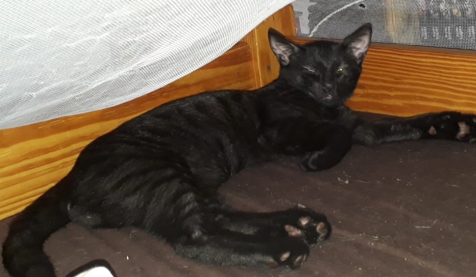 Bali est un magnifique chat noir au regard profond, né en 2024. Élégant et apaisant, il apporte immédiatement une présence douce et rassurante dans la maison.