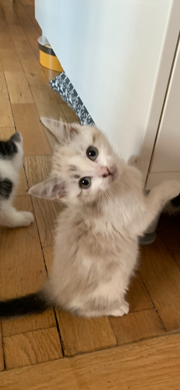 Une fois que vous l’avez ? Vous découvrirez un chat joueur et curieux, pro de la chasse aux boulettes de papier et de l’attaque acrobatique de fil, qui vous émerveillera de moult mouvements d’art martiaux de sa création. Une fois fatigué de ses prouesses, il aime dormir contre les jambes bien au chaud sur le lit. Il vient de découvrir le bonheur des caresses et s’y habitue encore (il faut y aller doucement et lui laisser le temps) mais en demande de plus en plus!