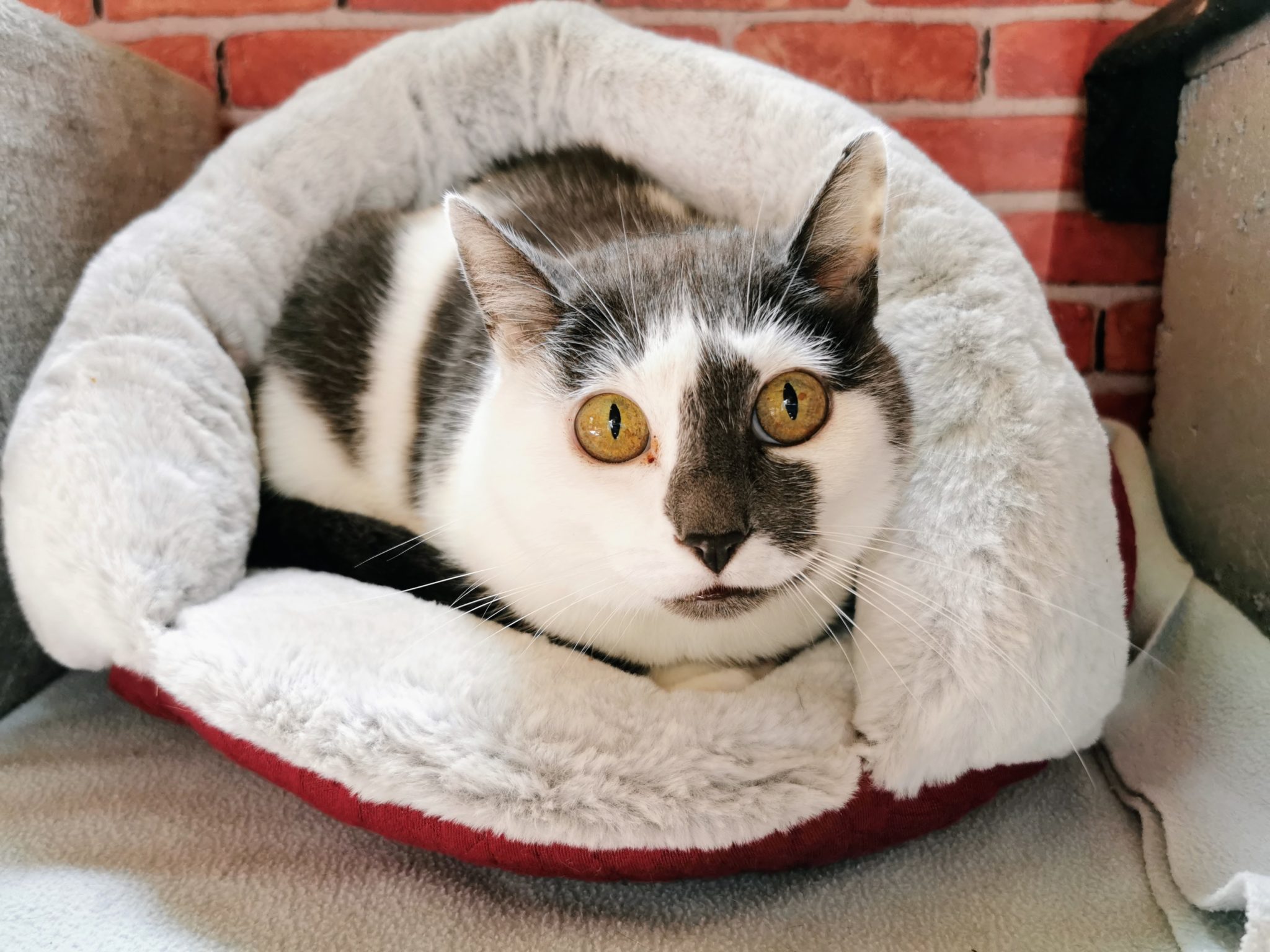 Étant positif FIV, elle peut être adoptée avec un autre chat positif ou avec un de ses frères.